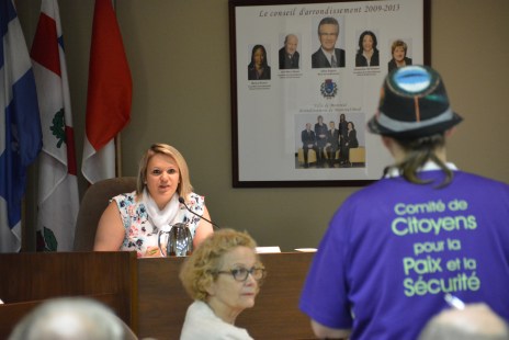 «J’éprouve un profond malaise à me trouver face à la photo qui est derrière vous», a affirmé Solo Fugère en s’adressant à Mme Black lors du deuxième conseil d’arrondissement de la mairesse, le 13 juin dernier.
