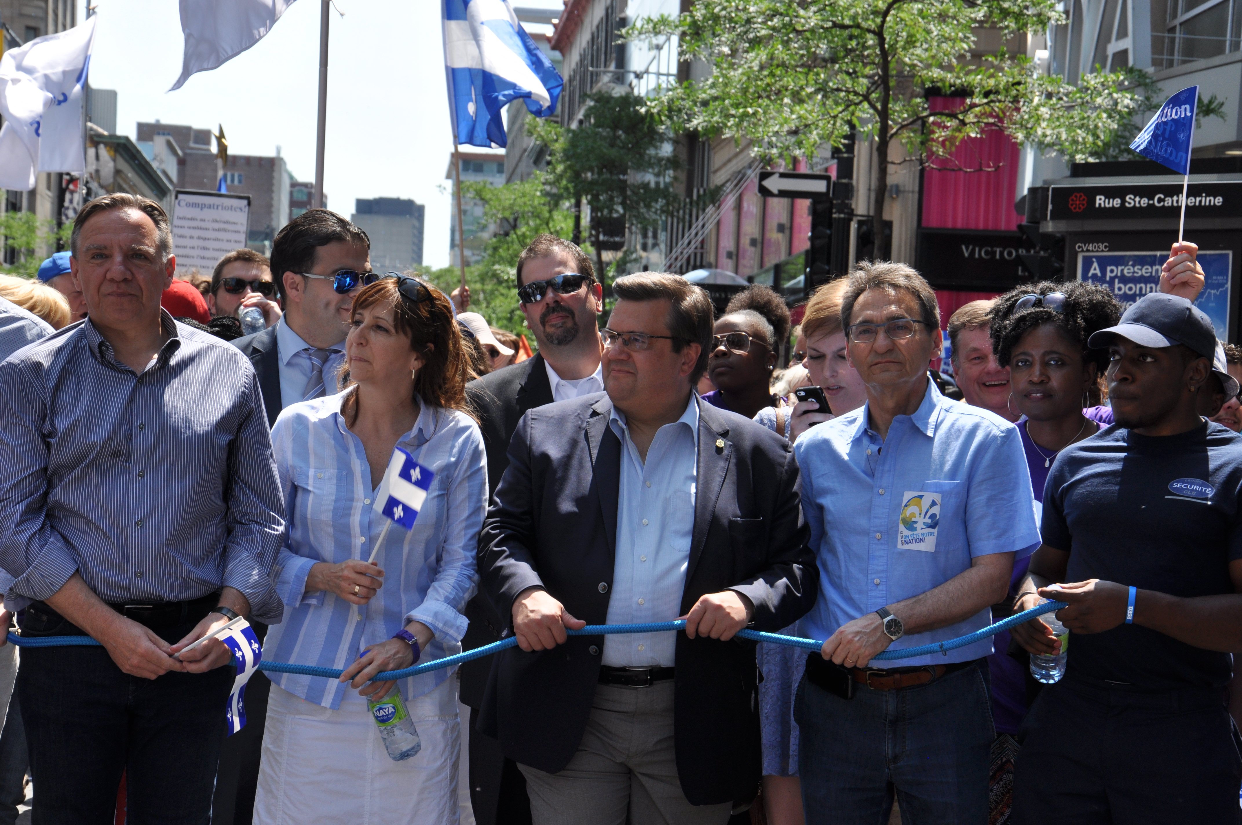 Le maire de Montréal, Denis Coderre, le membre du comité exécutif, Richard Bergeron, le chef de la Coalition Avenir Québec, François Legault, le chef intérimaire du Parti québécois (PQ), Sylvain Gaudreault, la candidate à la chefferie du PQ, Véronique Hivon, le chef intérimaire du Bloc Québécois, Rhéal Fortin, et d’autres personnalités politiques ont quant à elles fermé la marche.