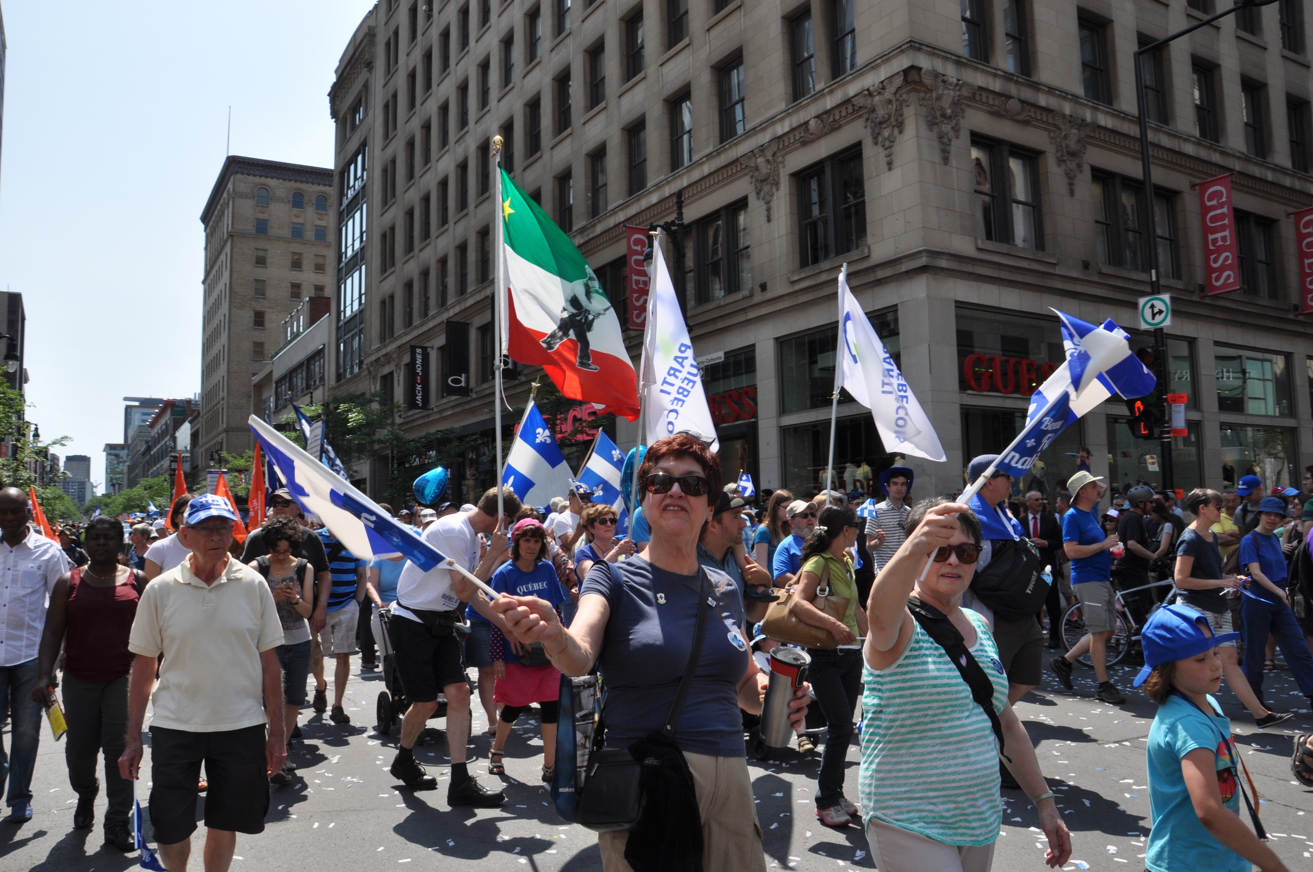 Des dizaines de milliers de personnes s’étaient massées tout au long du nouveau parcours sur l’artère commerciale pour assister au traditionnel défilé de la Saint-Jean-Baptiste. La foule semblait toutefois moins nombreuse que les années précédentes. «Les autres années, il y avait beaucoup plus de monde que ça», a-t-on pu entendre dans la foule.