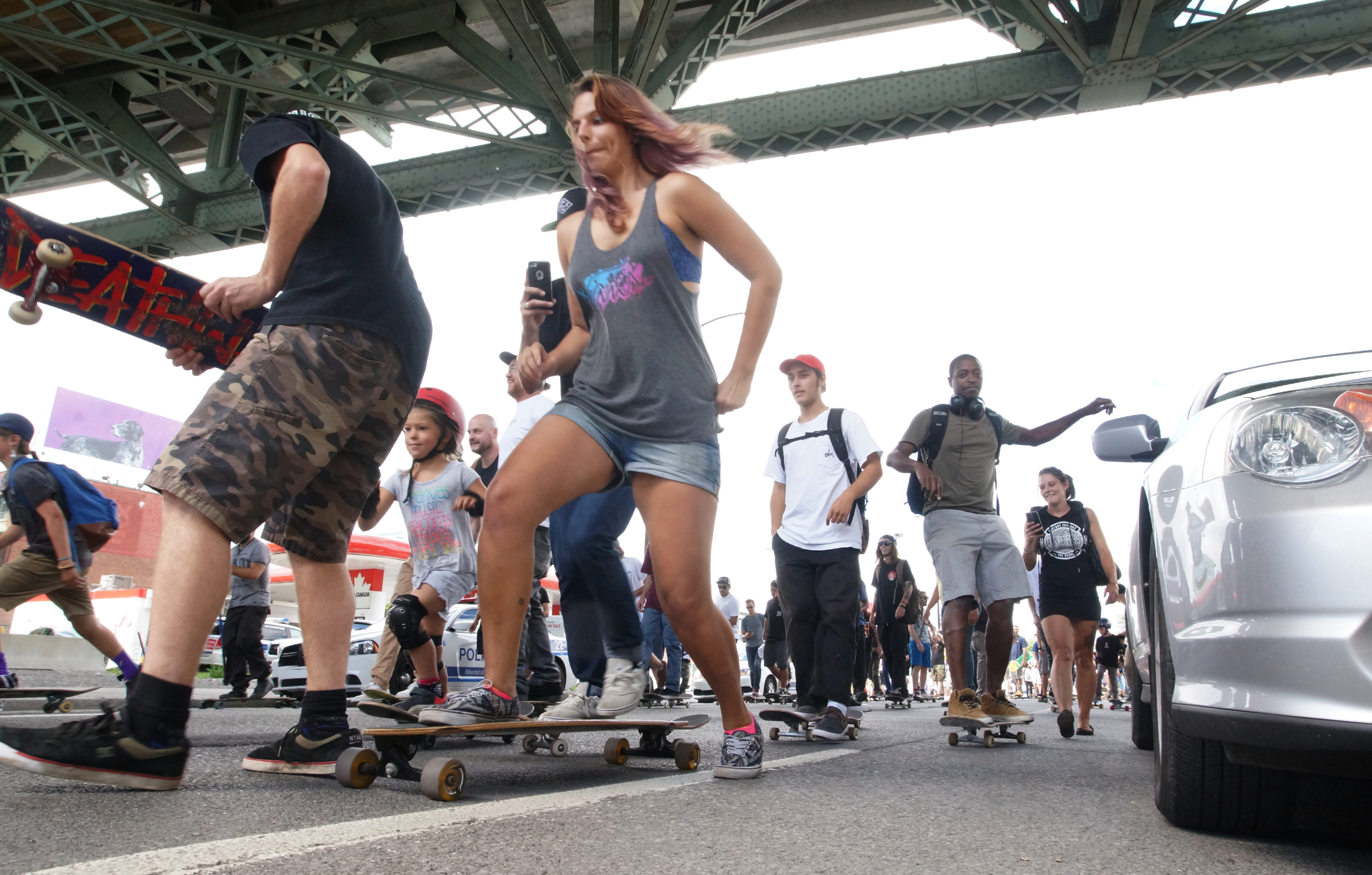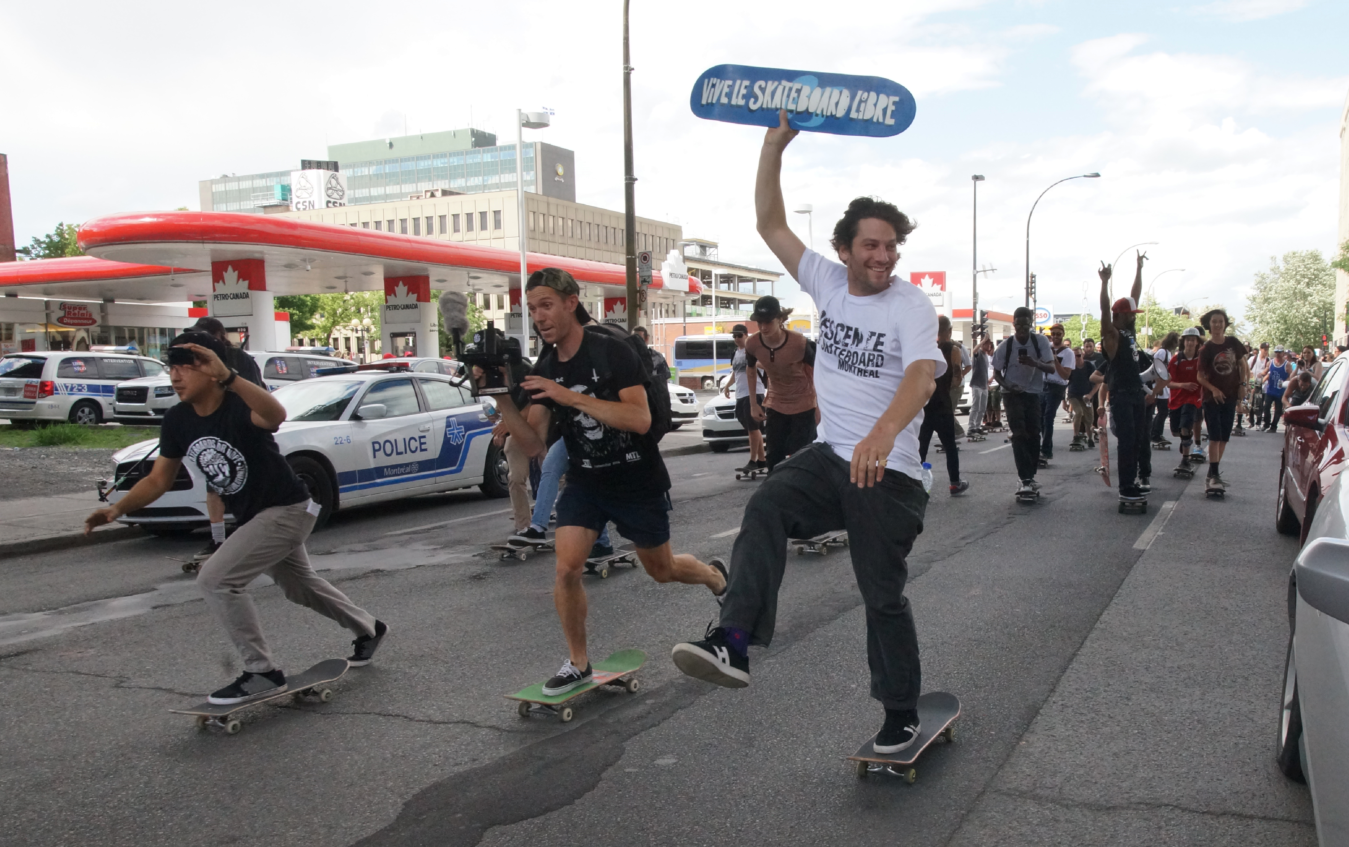 Témoignage de la vitalité et de la visibilité de cette communauté à Montréal, environ 150 amateurs de skateboard ont participé à la deuxième édition de la Descente de skateboard dimanche après-midi.