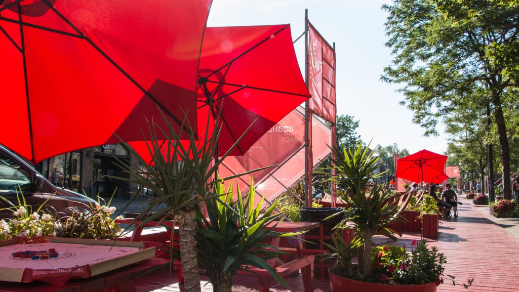 La Grande terrasse rouge de la rue Saint-Denis a été officiellement inaugurée, mardi, pour sa deuxième année, devant une dizaine de personnes, pour la plupart du milieu politique. Une nouvelle version a été élaborée pour la seconde mouture de l’installation réalisée par l’architecte Pascal Forget.
