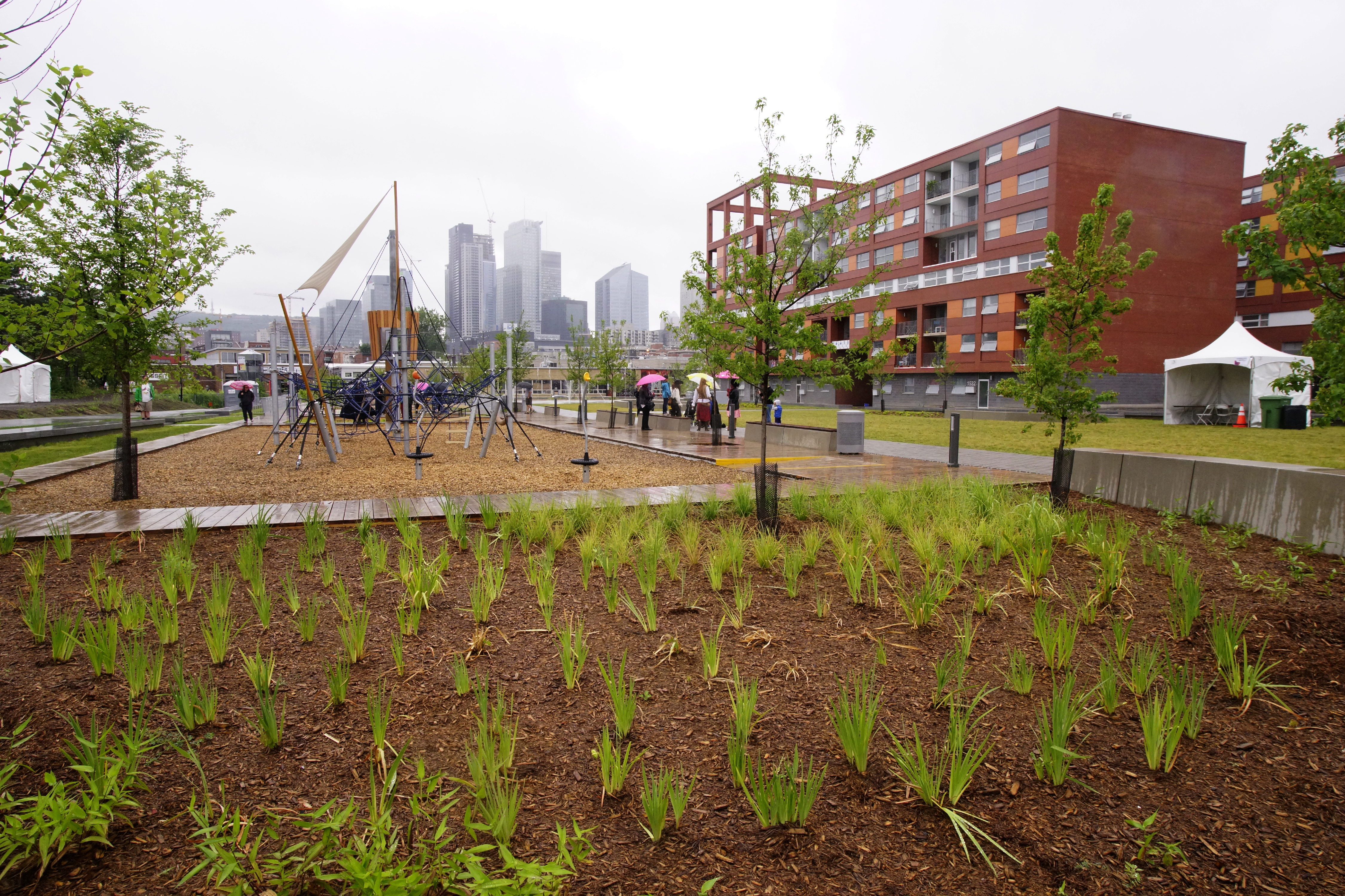La qualité de vie des familles de Griffintown s’améliore, comme en témoigne l’inauguration, dimanche, du premier parc pour enfants de ce quartier en pleine transformation.