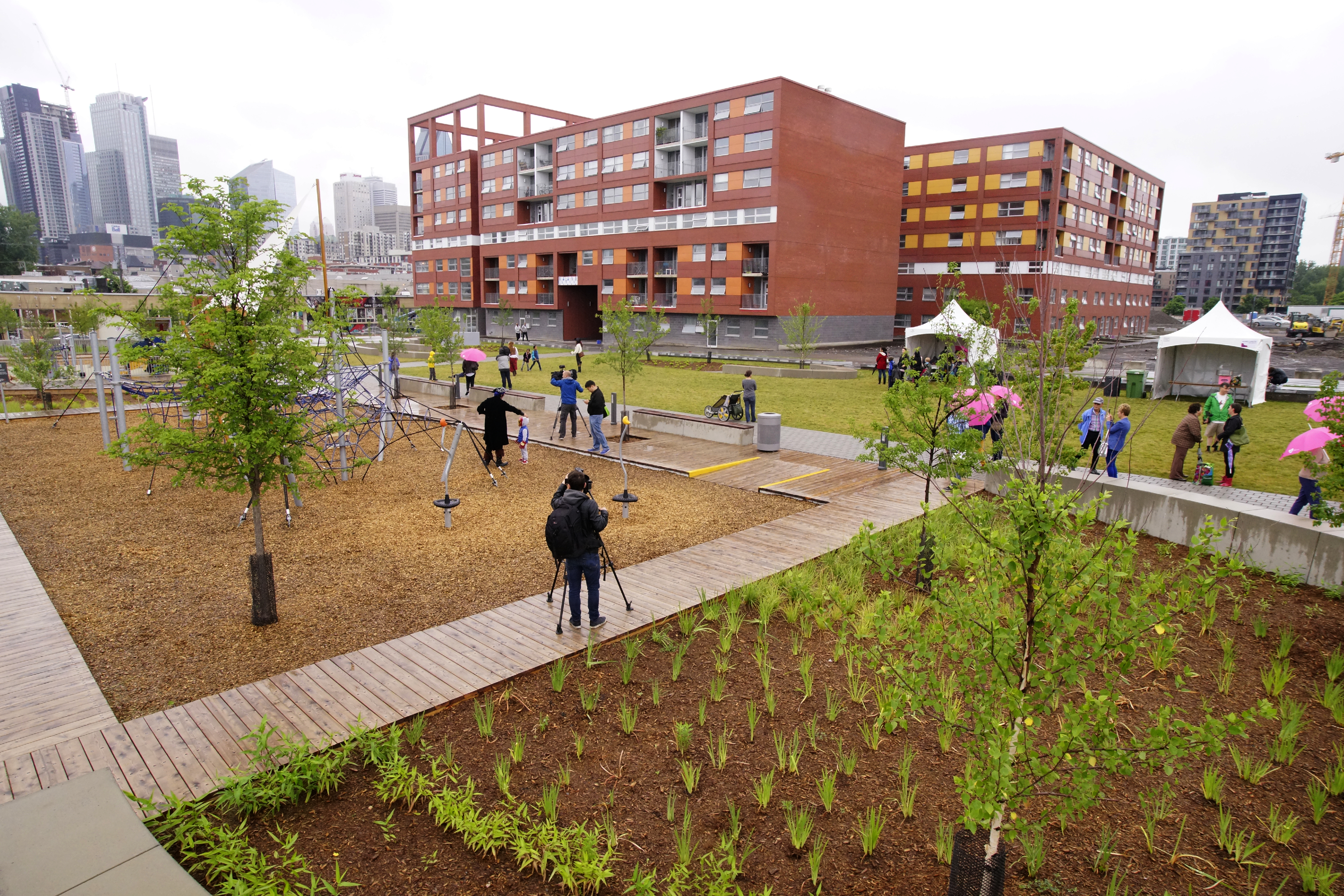 L’objectif de cet aménagement est justement de retenir les familles, ont souligné le maire de Montréal Denis Coderre et le maire de l’arrondissement Sud-Ouest Benoit Dorais. «Si on veut avoir un centre-ville fort, on veut augmenter jusqu’à 50 000 personnes le nombre de familles qui viennent ici, on a besoin de services, d’espaces verts, de mobilité durable, de centres communautaires, de bibliothèques», a estimé M. Coderre.