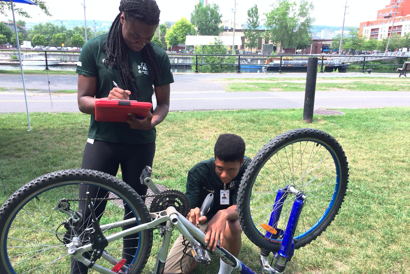Mercredi après-midi, Ayundai Nicolas-Walker, Gardine, Belzince et Miriam Vachon-Haddine étaient en bordure du canal de Lachine pour effectuer gratuitement le burinage de vélos.