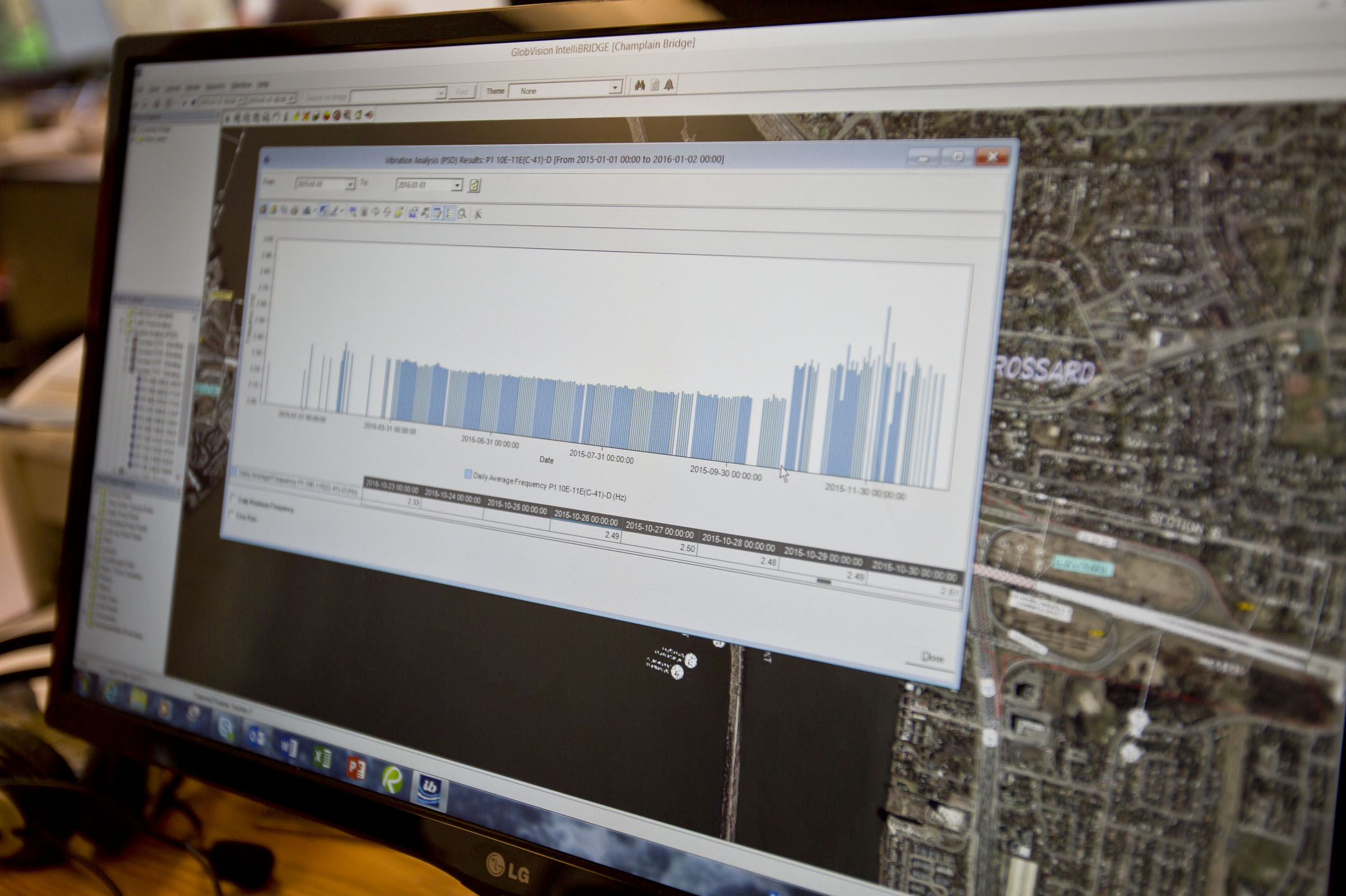 Sur le Chemin du golf, à L’Île-des-Sœurs, une salle réservée à la firme Cowi héberge une petite équipe, dirigée par René Tinawi. Des techniciens en informatique et des analystes passent la majeure partie de leur temps à colliger les données des 300 capteurs installés tout le long du pont. Entre les cinq ordinateurs et le four micro-ondes, l’avenir à court terme de la structure est analysé au peigne fin.