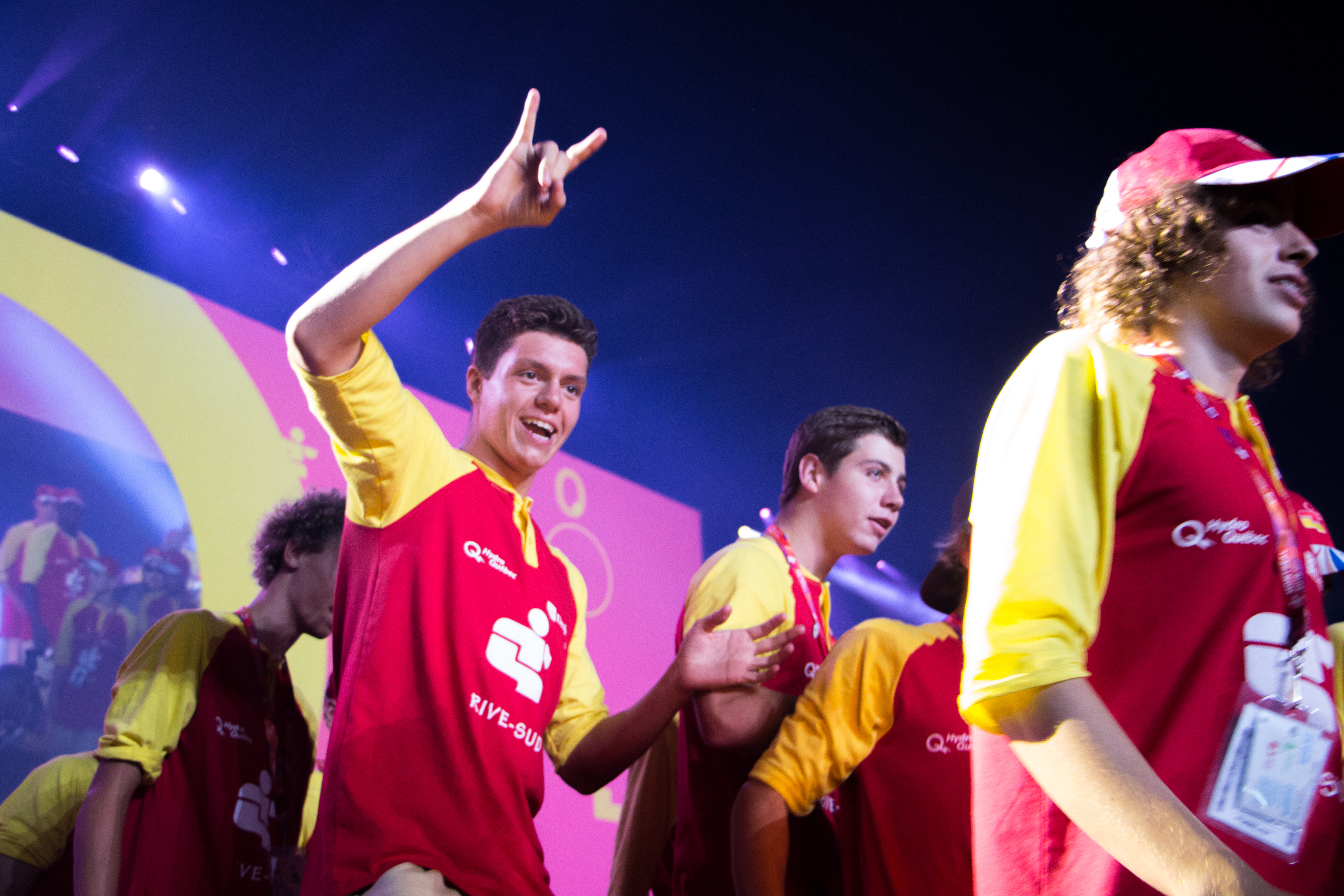 Après la présentation des 19 délégations représentant toutes les régions du Québec, dont trois pour Montréal, la troupe Spicy Circus en a mis plein la vue pour motiver les 3 700 jeunes athlètes participants, avec des acrobaties sur trampolines, en BMX, en patins à roulette, et même avec du breakdance.