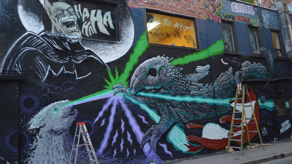 Une centaine de nouvelles œuvres viennent de faire leur apparition sur les murs des ruelles autour du bar Les Foufounes Électriques. Réalisées dans le cadre du festival Under Pressure, qui