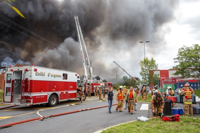 Le SSIAL a également recommandé aux résidents et aux entreprises de fermer leurs fenêtres à cause de l’important panache de fumée. Vers 14 h lundi, la fumée était présente dans tout le secteur situé entre le boul. Roland-Therrien, le boul. Marie-Victorin, le parc Michel-Chartrand et le boul. Jean-Paul-Vincent.