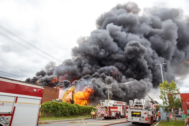 Le SSIAL a également recommandé aux résidents et aux entreprises de fermer leurs fenêtres à cause de l’important panache de fumée. Vers 14 h lundi, la fumée était présente dans tout le secteur situé entre le boul. Roland-Therrien, le boul. Marie-Victorin, le parc Michel-Chartrand et le boul. Jean-Paul-Vincent.
