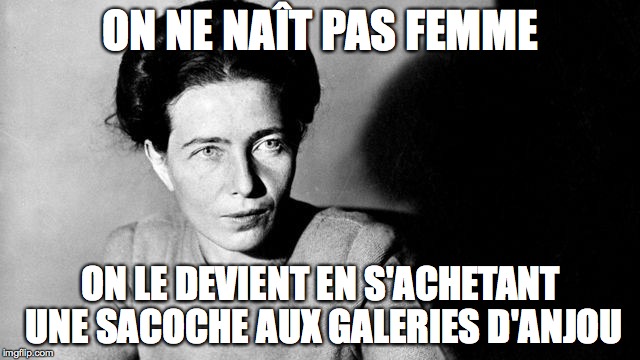 Pour en revenir au fantôme de De Beauvoir, il ne se retourne pas dans sa tombe, premièrement parce qu’il est nihiliste, mais surtout, parce que l’auteure du Deuxième Sexe a probablement abandonné depuis longtemps l’espoir que sa citation la plus célèbre, «On ne naît pas femme, on le devient», soit comprise. Si on lit le livre, on saisit qu’il ne s’agit pas d’une injonction à embrasser sa féminité (au travers un parcours de magasinage ou non), mais plutôt du constat d’une fatalité : on ne naît pas avec le désir inné de remplir les fonctions que la société attend de nous en tant que femmes, on adhère à ces contraintes sous l’effet d’une socialisation dont ce ridicule concours n’est que l’une des nombreuses manifestations.