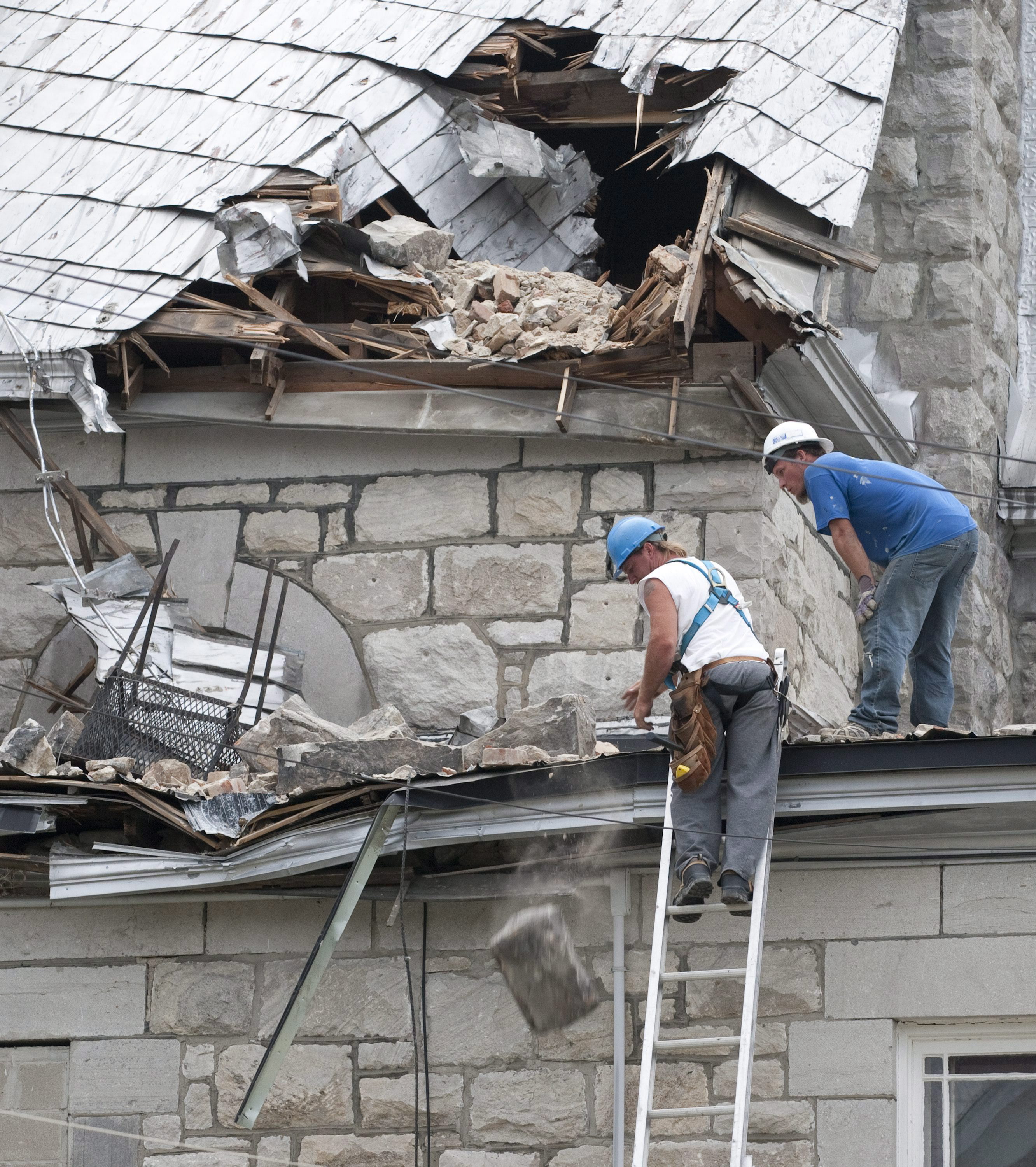 Après un tremblement de terre à Bowman, en Outaouais, en 2010. Source: Archives La Presse Canadienne.