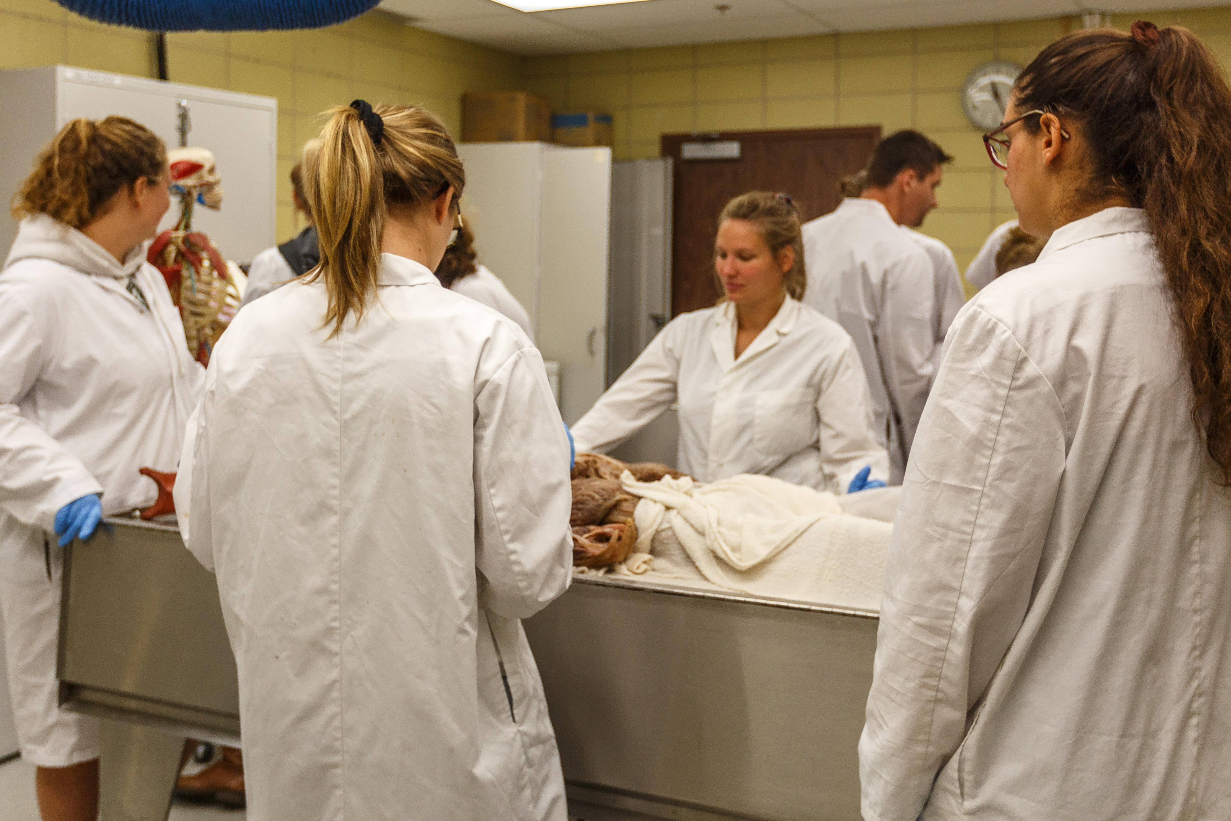 Lors du passage de TC Media au laboratoire d’anatomie de l’UdeS, des étudiants de physiothérapie et d’ergothérapie développaient leurs connaissances de l’anatomie humaine à l’aide de… deux corps embaumés et disséqués.