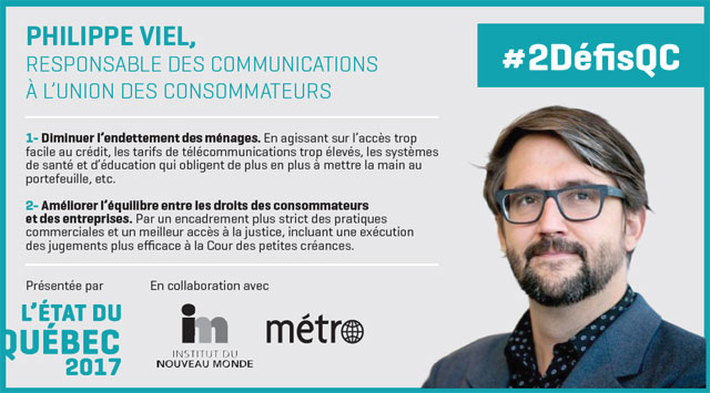 En collaboration avec le journal Métro, l’Institut du nouveau monde (INM) lance les #2défisQC. Dans L’état du Québec 2017, plusieurs personnalités ont été invitées à présenter les deux défis qui, selon elles, devraient trôner au sommet de la liste de priorités de nos décideurs.