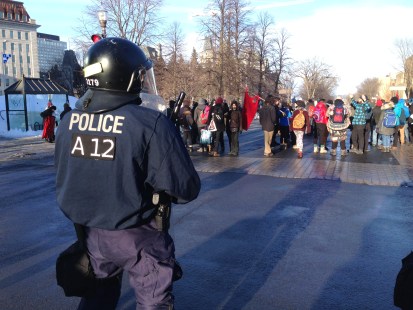Environ 300 étudiants ont manifesté à Québec jeudi après-midi pour la rémunération des stages dans tous les domaines d’études.