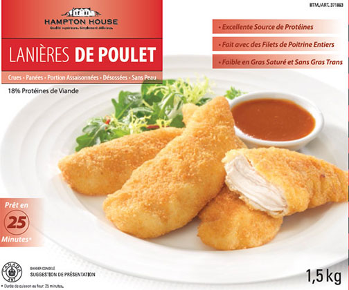 OTTAWA — Un rappel de lanières de poulet de marque Hampton House est lancé au Canada en raison d’une possible présence de bactéries dangereuses qui pourraient causer des maladies d’origine alimentaire.