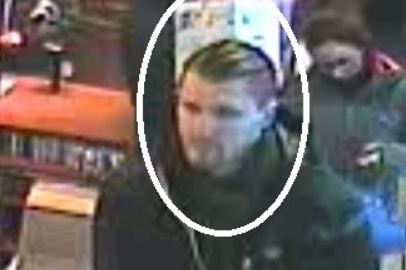 Au moment de cette photo tirée d’une vidéo de surveillance, l’homme portait un manteau noir à capuchon avec une fermeture éclair de couleur argent. Il y avait deux petites lignes blanches sur ses manches au niveau des poignets (peut-être des velcros).