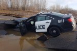 La route s’affaisse sous les roues d’une autopatrouille