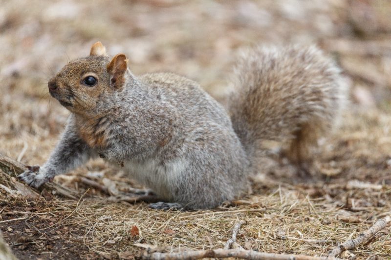 Quant à l’écureuil gris – qu’on retrouve en ville – sa longueur totale est de 43 à 54 cm. Son pelage est gris ou noir et dans le sud-ouest du Québec, certains individus possèdent une fourrure de couleur blanche ou cannelle. Il construit son nid avec des feuilles et des petites branches, à une hauteur de 10 à 15 m du sol.