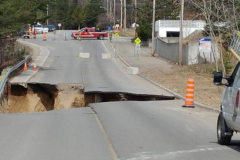 C’est l’appel d’un citoyen, vers 6h ce matin qui a alarmé les autorités. Les lieux ont tout de suite été sécurisés et aucune évacuation n’a été nécessaire. L’aqueduc a été détourné ainsi que l’électricité par crainte qu’un poteau d’Hydro-Québec s’affaisse.