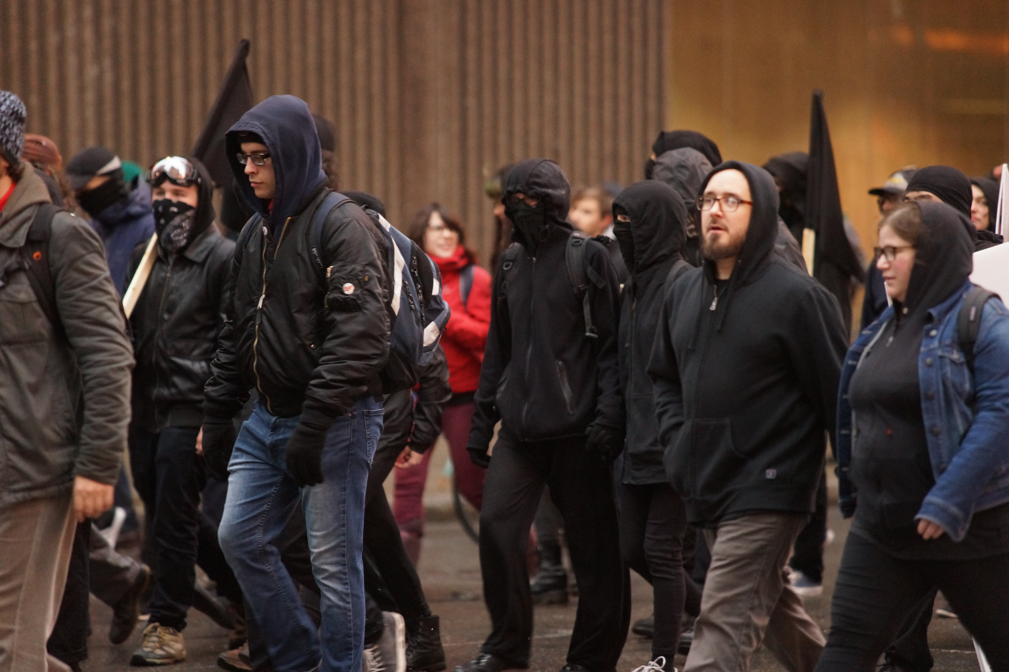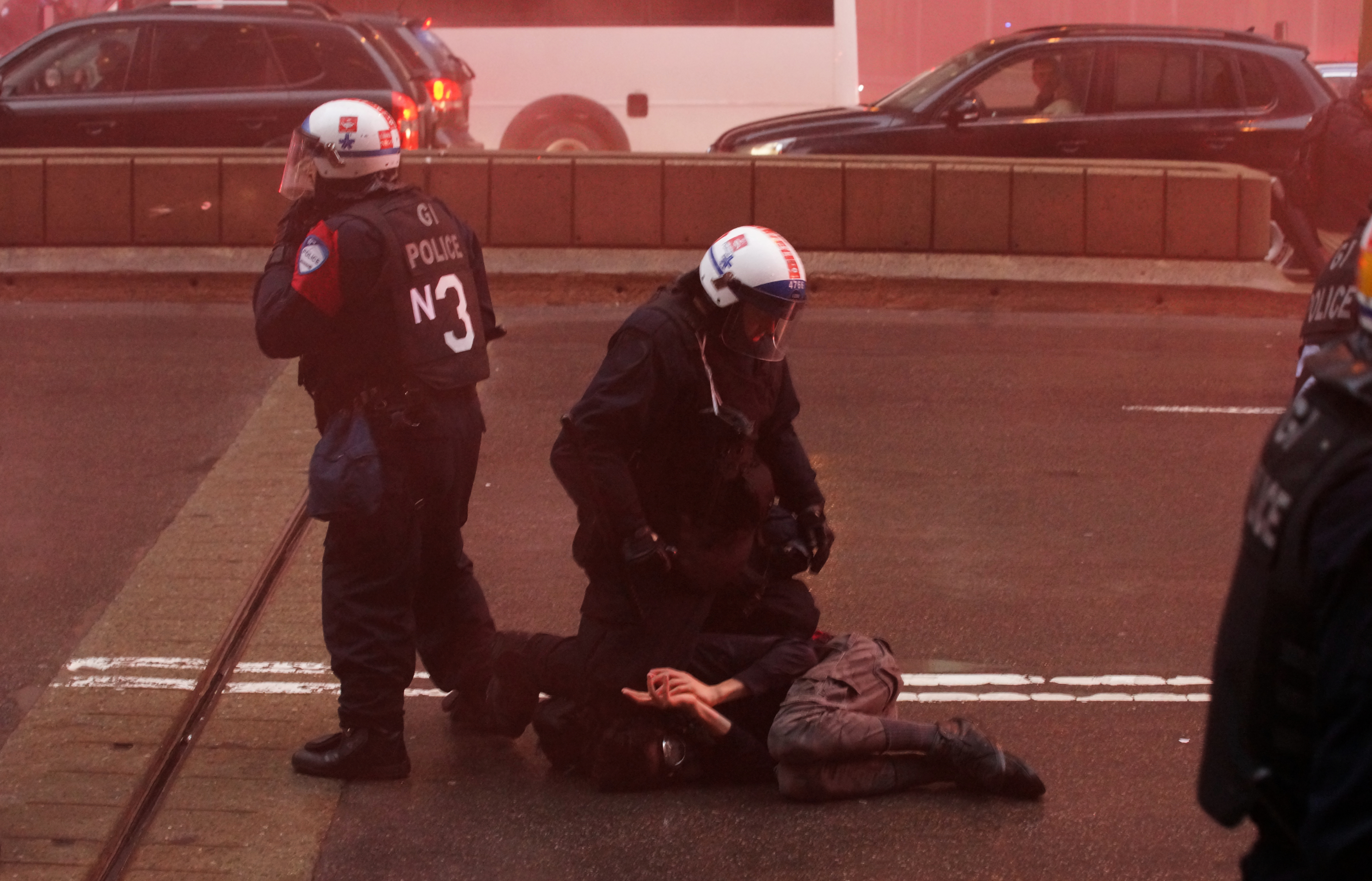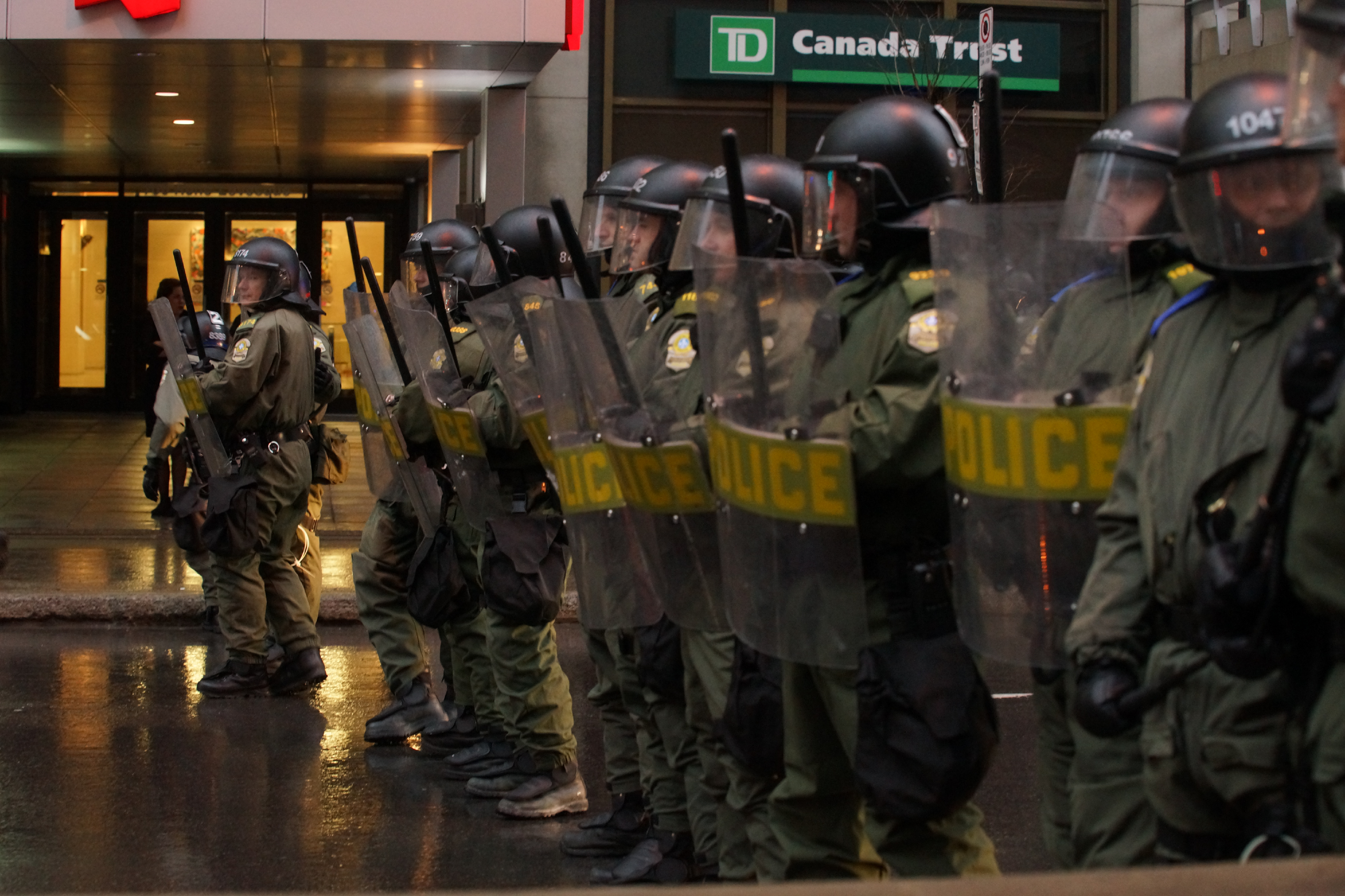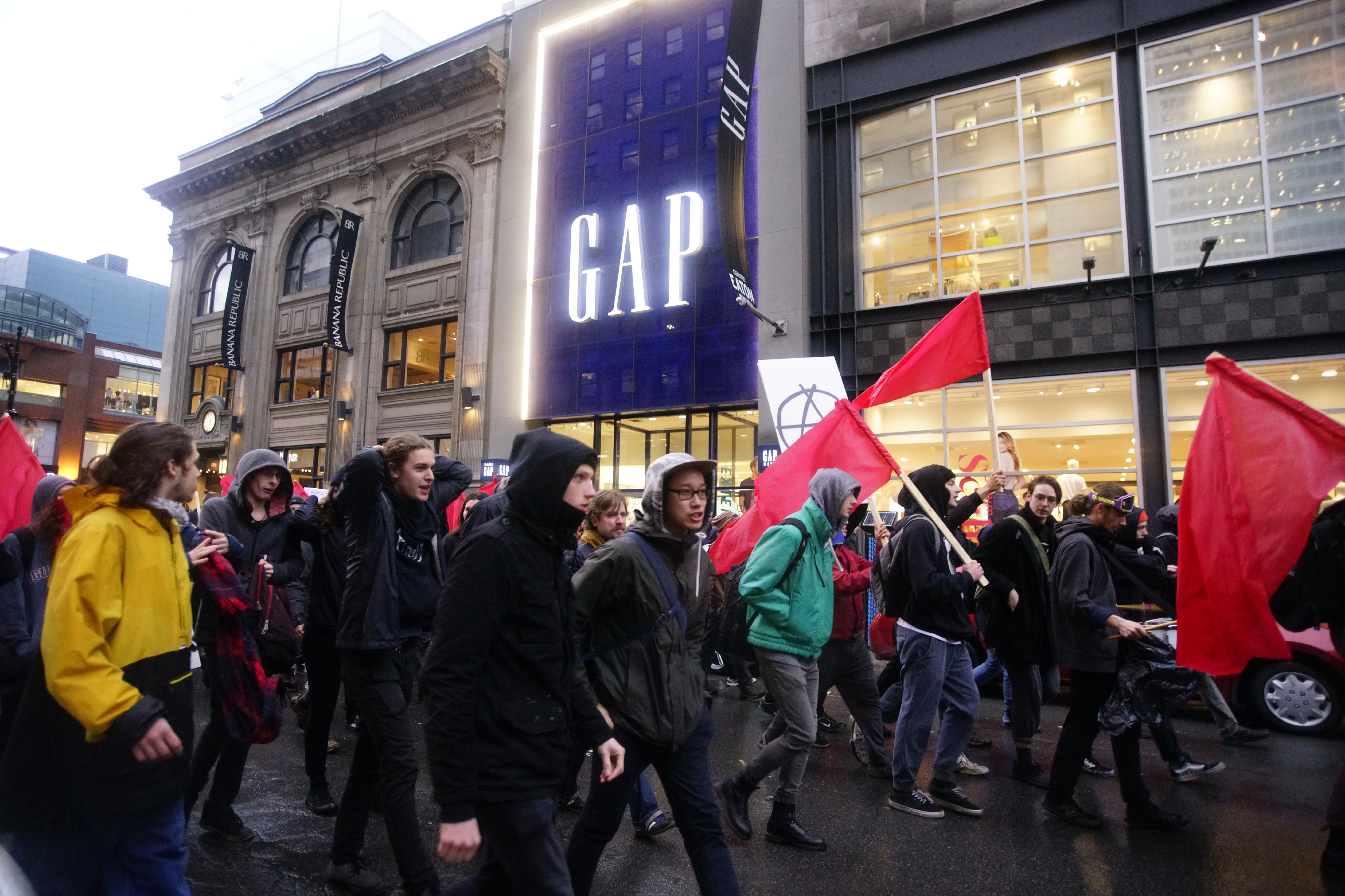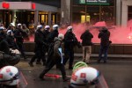 Les militants ont lancé des bombes fumigènes à la police, qui a répondu avec du gaz lacrymogène. Quelques vitrines de banques aussi été fracassées. Seule une personne a été arrêtée pour voie de faits contre un policier.