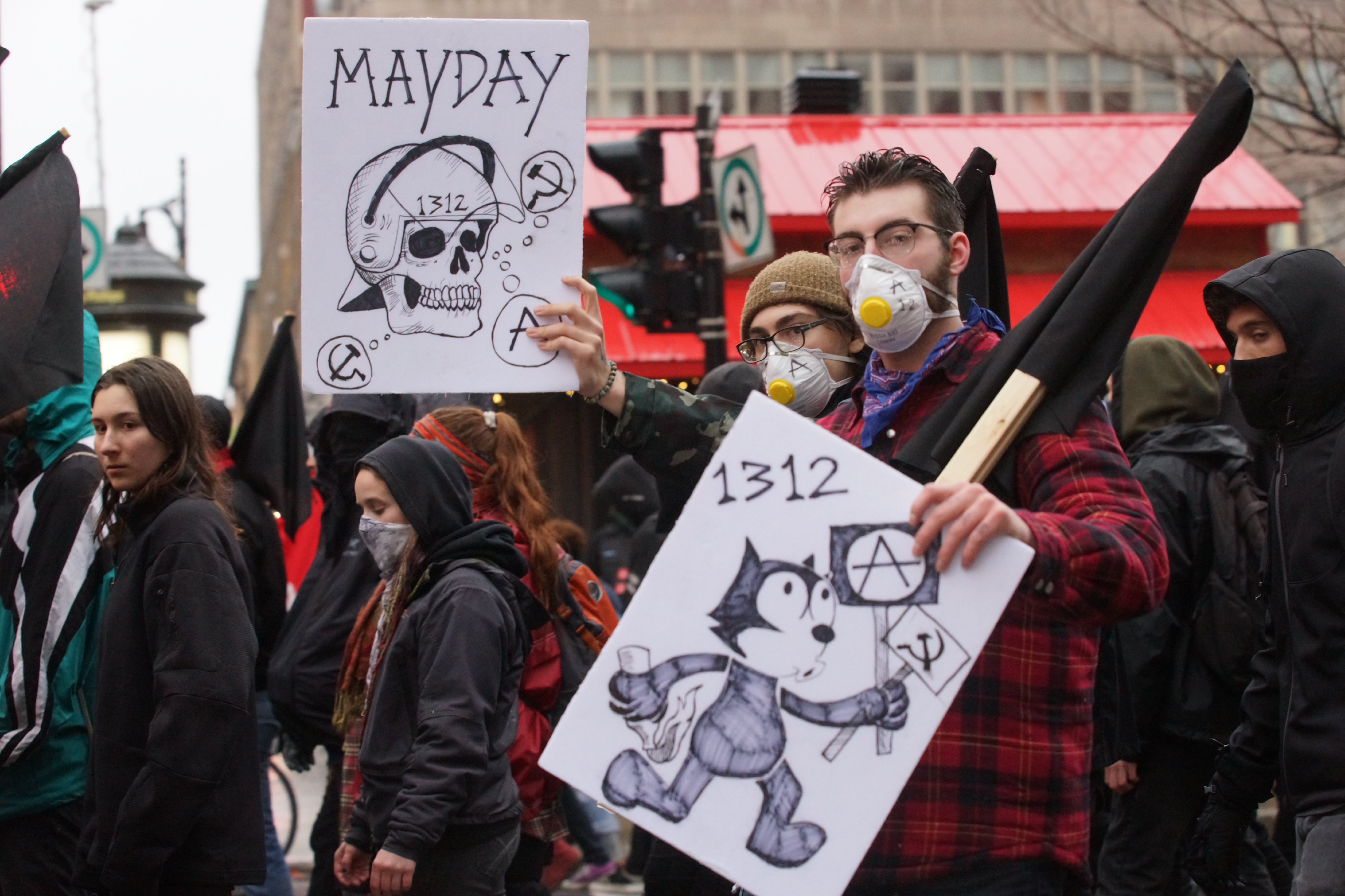 L’autre marche qui partait du square Phillips, dans le centre-ville de Montréal, s’est avérée plus mouvementée. Environ 200 personnes ont participé à la manifestation qui se voulait «anticapitaliste».