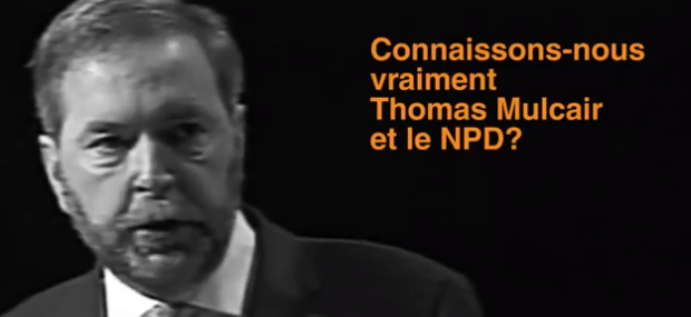 La publicité se termine sur la phrase: «Nous ne pouvons pas nous permettre le NPD de Mulcair.»