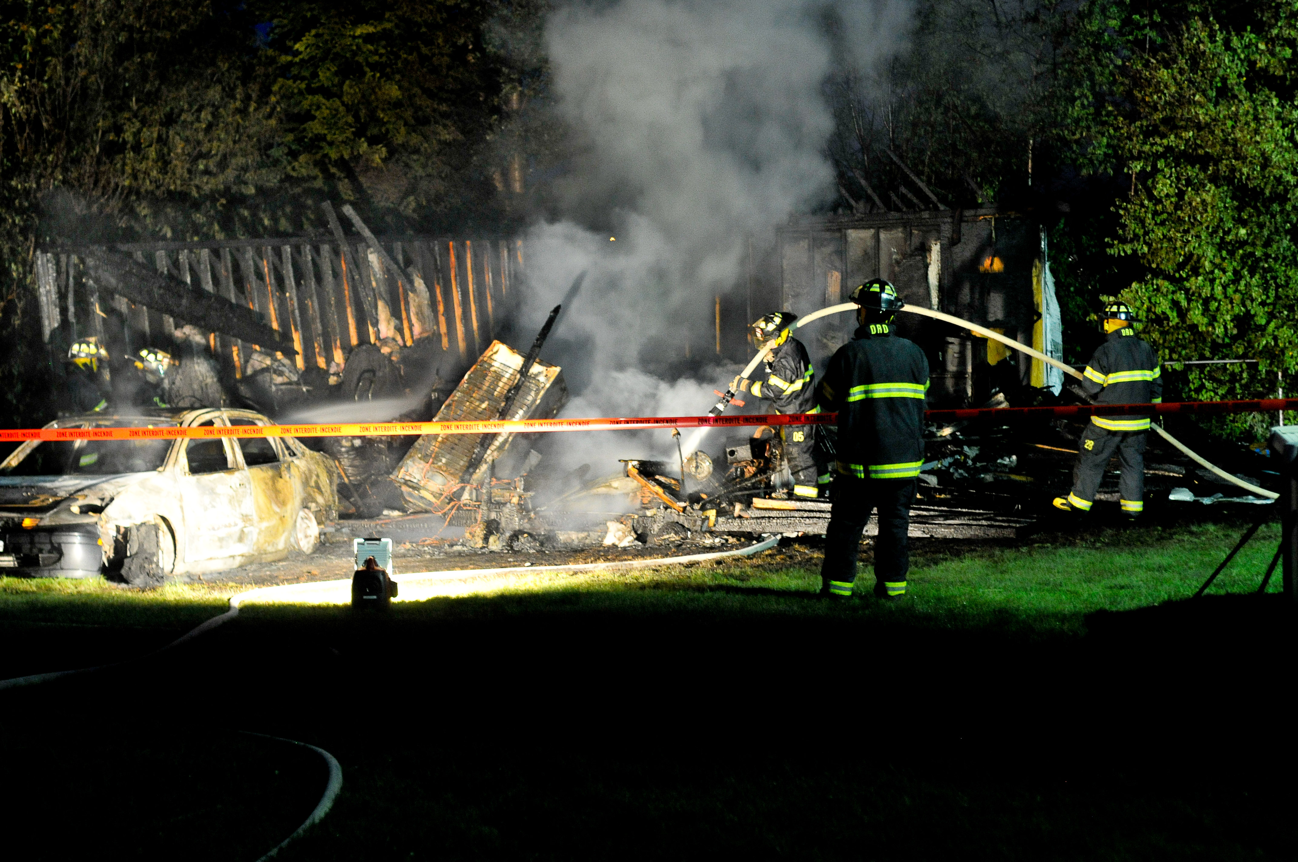 «À notre arrivée, c’était l’embrasement général. Le garage est d’ailleurs complètement détruit. Notre préoccupation était d’éviter la propagation du feu en raison, notamment, de la proximité de la cour d’entreposage de bois de l’entreprise Roland Boulanger. Des employés de nuit ont d’ailleurs dû déplacer du bois pour sécuriser les lieux», a raconté le chef des pompiers de Warwick.