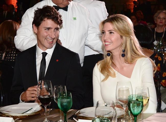 Le premier ministre prenait place avec son épouse Sophie Grégoire Trudeau au côté d’Ivanka Trump et de la conseillère adjointe à la sécurité nationale Dina Powell durant le gala.