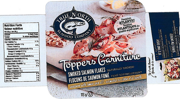 L’Agence canadienne d’inspection des aliments (ACIA) a annoncé sur son site web que la Garniture flocons de saumon fumé aromatisé au citron et à l’aneth de True North Seafood devait être retirée des tablettes parce qu’elle était peut-être contaminée par la bactérie.