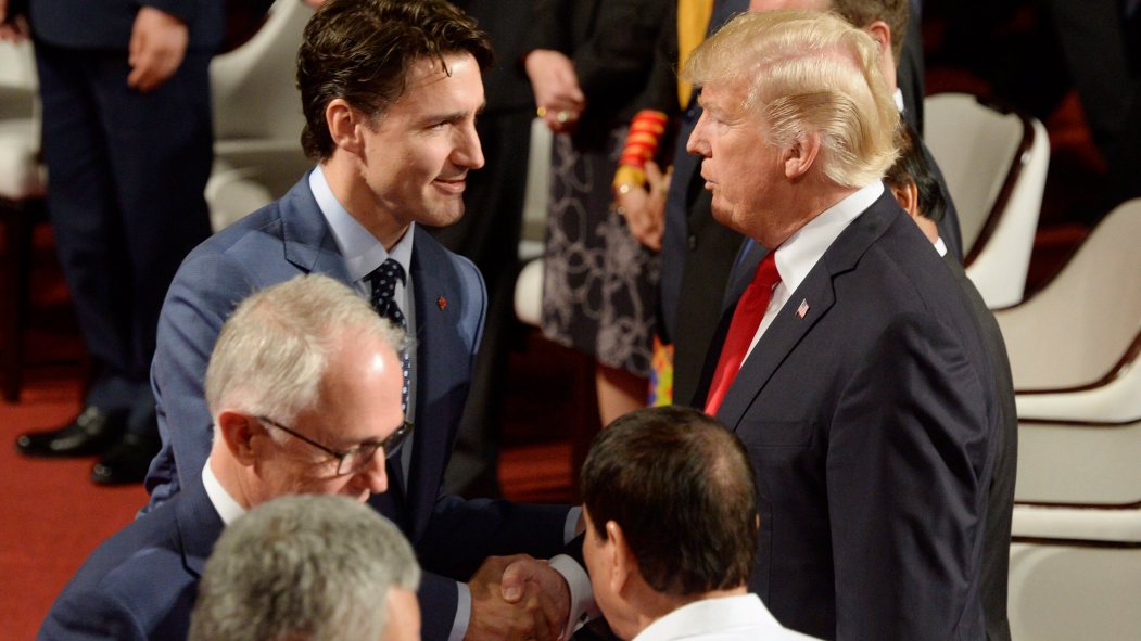 Canadian Prime Minister Justin Trudeau, left, shakes hands with U.S. President Donald Trump as they take their seats at the opening ceremony of the 31st ASEAN Summit in Manila, Philippines on Monday, Nov. 13, 2017. THE CANADIAN PRESS/Adrian Wyld Photo: Adrian Wyld/La Presse canadienne