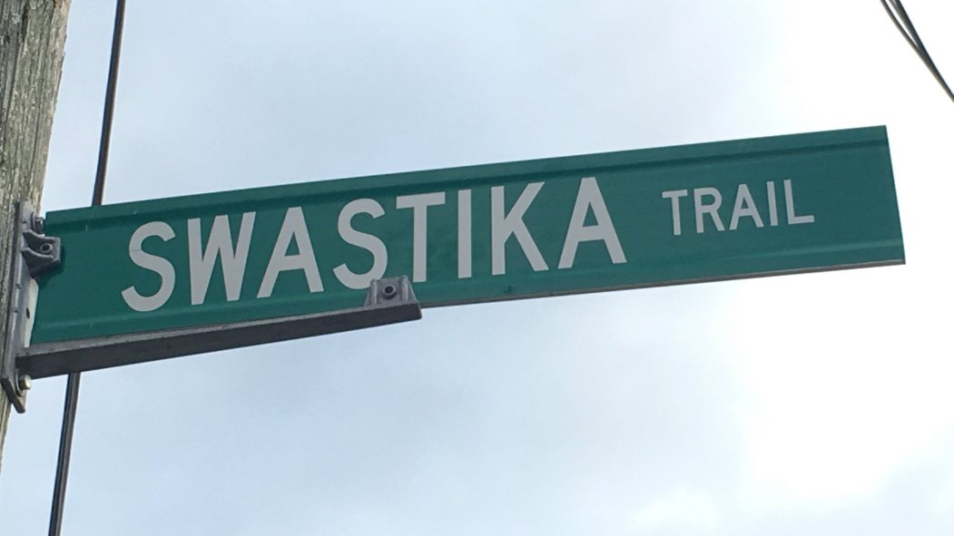 Selon les résidants locaux, le chemin Svastika a été baptisé dans les années 1920 avant la montée d’Adolf Hitler au pouvoir dans l’Allemagne nazie. Ceux qui souhaitent conserver le nom font valoir que la croix gammée est un symbole possédant une longue histoire qui remonte bien avant la Deuxième Guerre mondiale alors que ceux qui désirent le changer soutiennent qu’il rime avec haine et génocide.