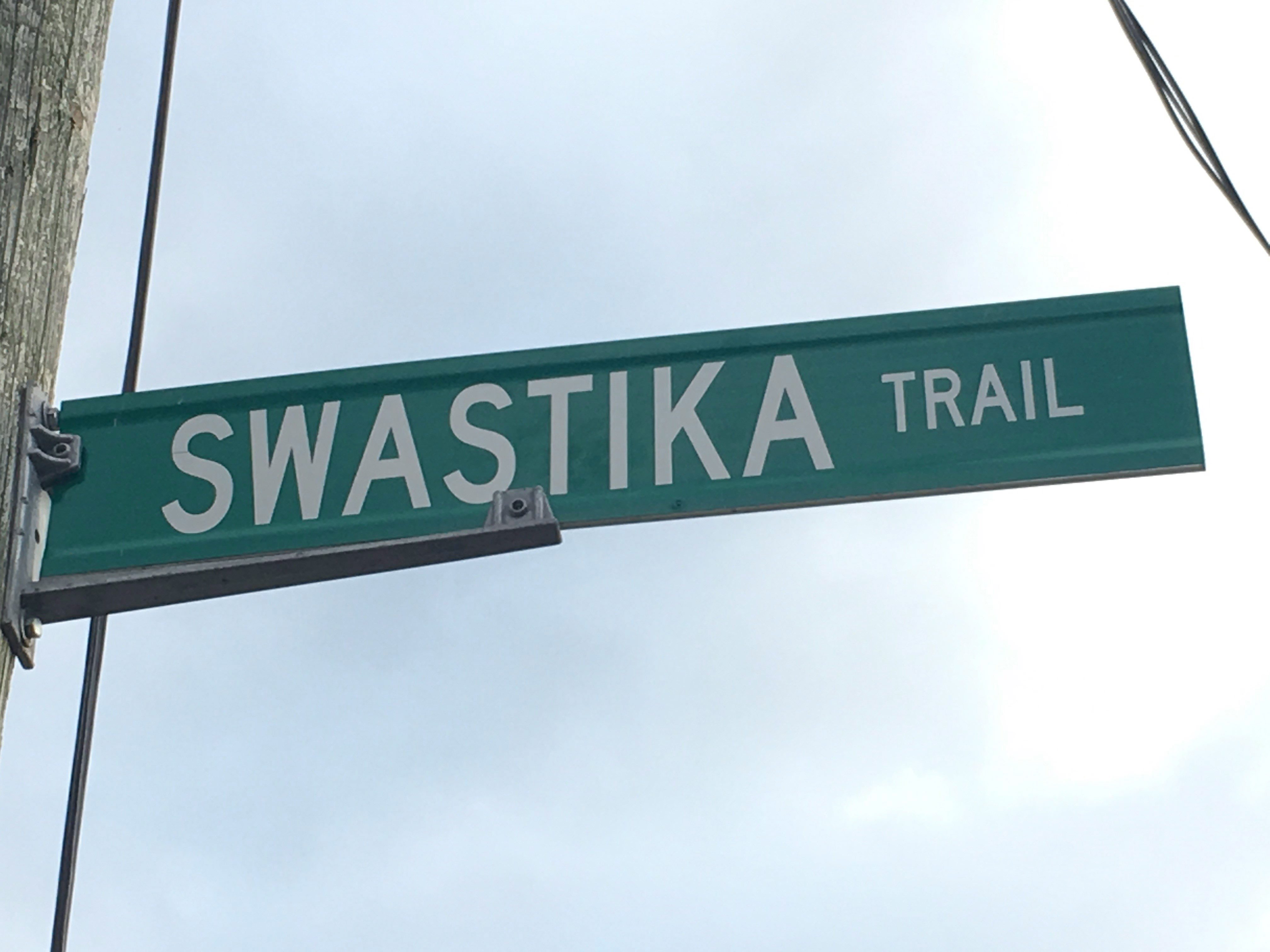 Selon les résidants locaux, le chemin Svastika a été baptisé dans les années 1920 avant la montée d’Adolf Hitler au pouvoir dans l’Allemagne nazie. Ceux qui souhaitent conserver le nom font valoir que la croix gammée est un symbole possédant une longue histoire qui remonte bien avant la Deuxième Guerre mondiale alors que ceux qui désirent le changer soutiennent qu’il rime avec haine et génocide.