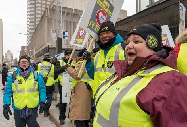 MONTRÉAL — Une centaine de brigadiers scolaires en uniforme, membres du Syndicat canadien de la fonction publique (SCFP-FTQ), ont manifesté mardi devant le quartier général du Service de police de la Ville de Montréal pour revendiquer de meilleures conditions de travail.