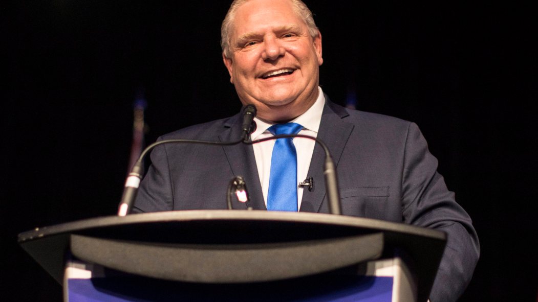 Avant son discours, Doug Ford avait été rejoint sur scène par Christine Elliott, Caroline Mulroney et Tanya Granic Allen, les trois candidats contre lesquels il a remporté la course à la direction.