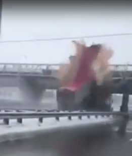 La benne a complètement explosé sous le violent impact. Heureusement, personne n’a été blessé. Des morceaux de la benne se sont encastrés dans la passerelle.