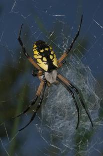 Quoiqu’elles ne fassent pas partie de la même classe que les insectes, les araignées (classe : arachnides) sont également dignes de mention. C’est le cas de l’argiope (Argiope aurentia), une grosse araignée noir et jaune souvent décrite comme «araignée banane». À l’automne, les femelles de cette espèce peuvent atteindre trois centimètres de diamètre; leur taille et leurs couleurs ne trompent pas!