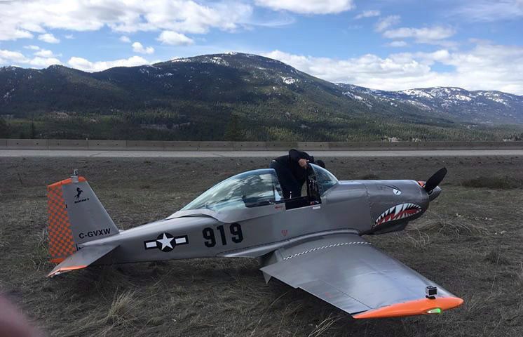 Debra Sharkey, une automobiliste qui se rendait à Kamloops, raconte avoir vu le Mustang II voler en rase-motte au-dessus de l’autoroute à environ 10 km au sud de Merritt, avant d’atterrir sur le terre-plein central séparant les voies de l’autoroute.