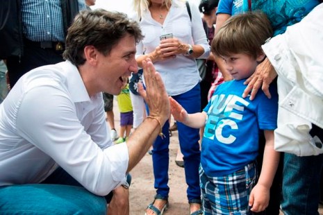 Comme c’est souvent le cas dans les bains de foule du premier ministre, les gens se bousculaient pour prendre des égoportraits avec lui. Plusieurs parents se faufilaient dans la masse de gens pour tendre leur enfant au premier ministre.