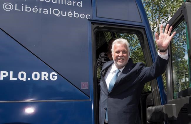 NEUVILLE, Qc — Le chef libéral, Philippe Couillard, a trinqué samedi avec un producteur de cidre… aussi candidat péquiste.