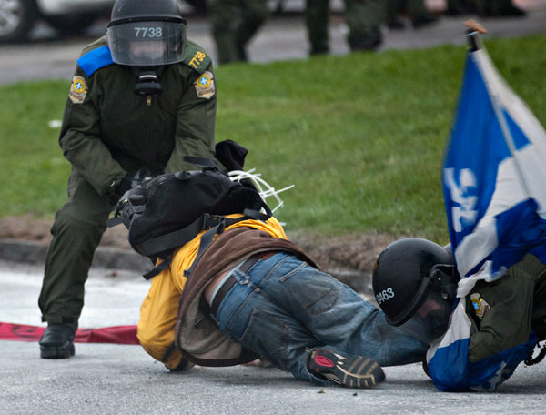 La coordonnatrice de la Ligue des droits et libertés, Nicole Filion, a rappelé que l’actuel ministre de la Justice, Bertrand St-Arnaud, avait lui-même réclamé une commission d’enquête publique, alors qu’il était encore membre de l’opposition, sur les agissements des policiers pendant la manifestation monstre qui avait eu lieu à Victoriaville, au printemps dernier. La violence des affrontements entre les policiers et les manifestants avait alors choqué les Québécois, lors du congrès du Parti libéral du Québec, en mai dernier.