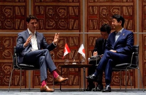 M. Trudeau a eu des entretiens dimanche avec les dirigeants de deux partenaires commerciaux clés — le premier ministre japonais Shinzo Abe et le premier ministre australien Scott Morrison — au cours desquels il a été question du sommet et de l’avenir d’un accord commercial entre 11 pays du littoral du Pacifique.