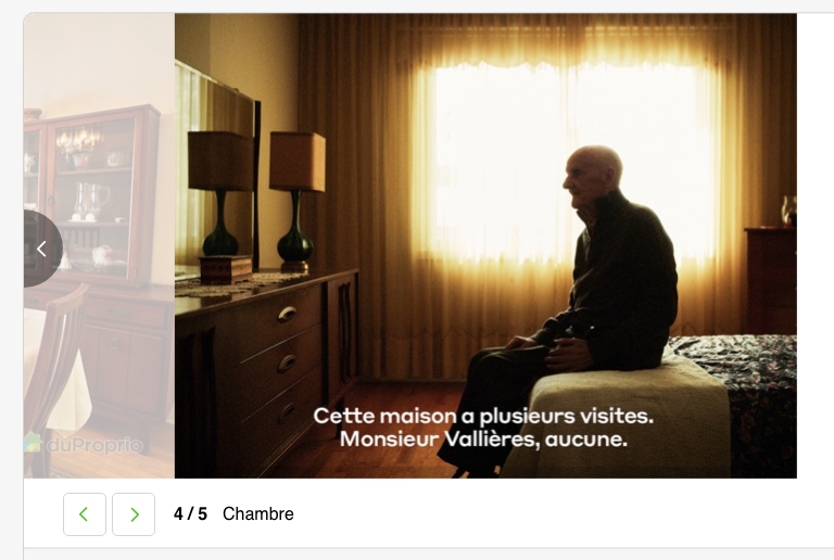 Parmi les outils de sensibilisation utilisés par l’organisme, une annonce sur le site web du service de vente immobilière duProprio illustre tristement la réalité des aînés.
