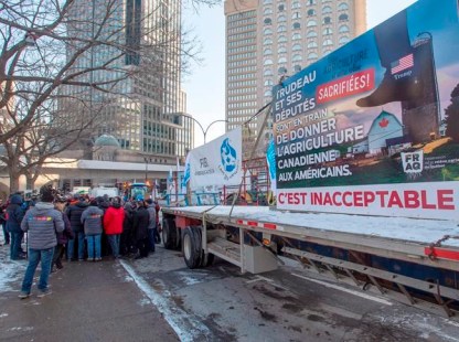 La manifestation était le fait des producteurs laitiers se disant exaspérés par la part de marché de plus en plus grande accordée aux partenaires internationaux dans les ententes de libre-échange sans que les compensations qu’on ne cesse de leur promettre ne se matérialisent.