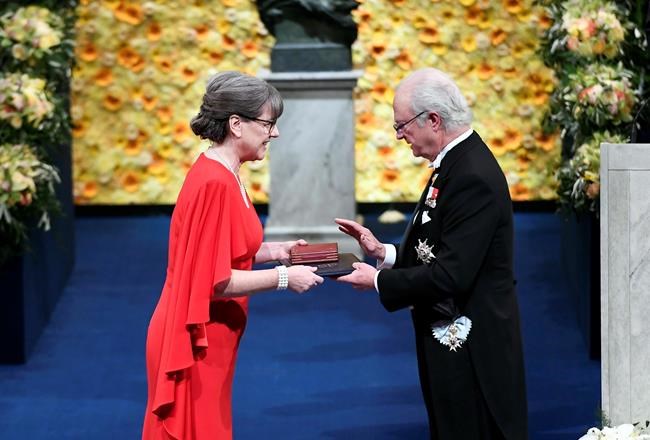 Donna Strickland, originaire de Guelph, en Ontario, et professeure à l’Université de Waterloo, est l’une des trois lauréates du prix Nobel de physique cette année, et elle a officiellement reçu le prix avec un large sourire, lundi à Stockholm, des mains du roi de Suède.