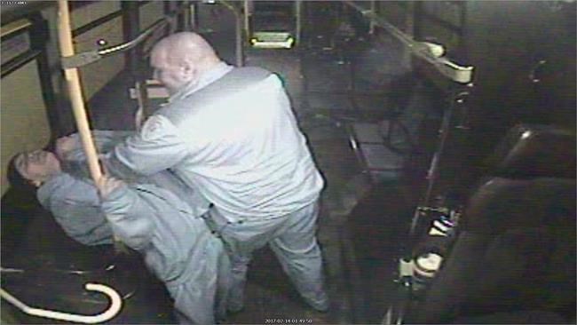 M. Fraser lui ordonne de quitter l’autobus plus d’une vingtaine de fois avant que la vidéo ne montre le chauffeur agrippant Thomas par le cou et tentant de le pousser hors du véhicule.
