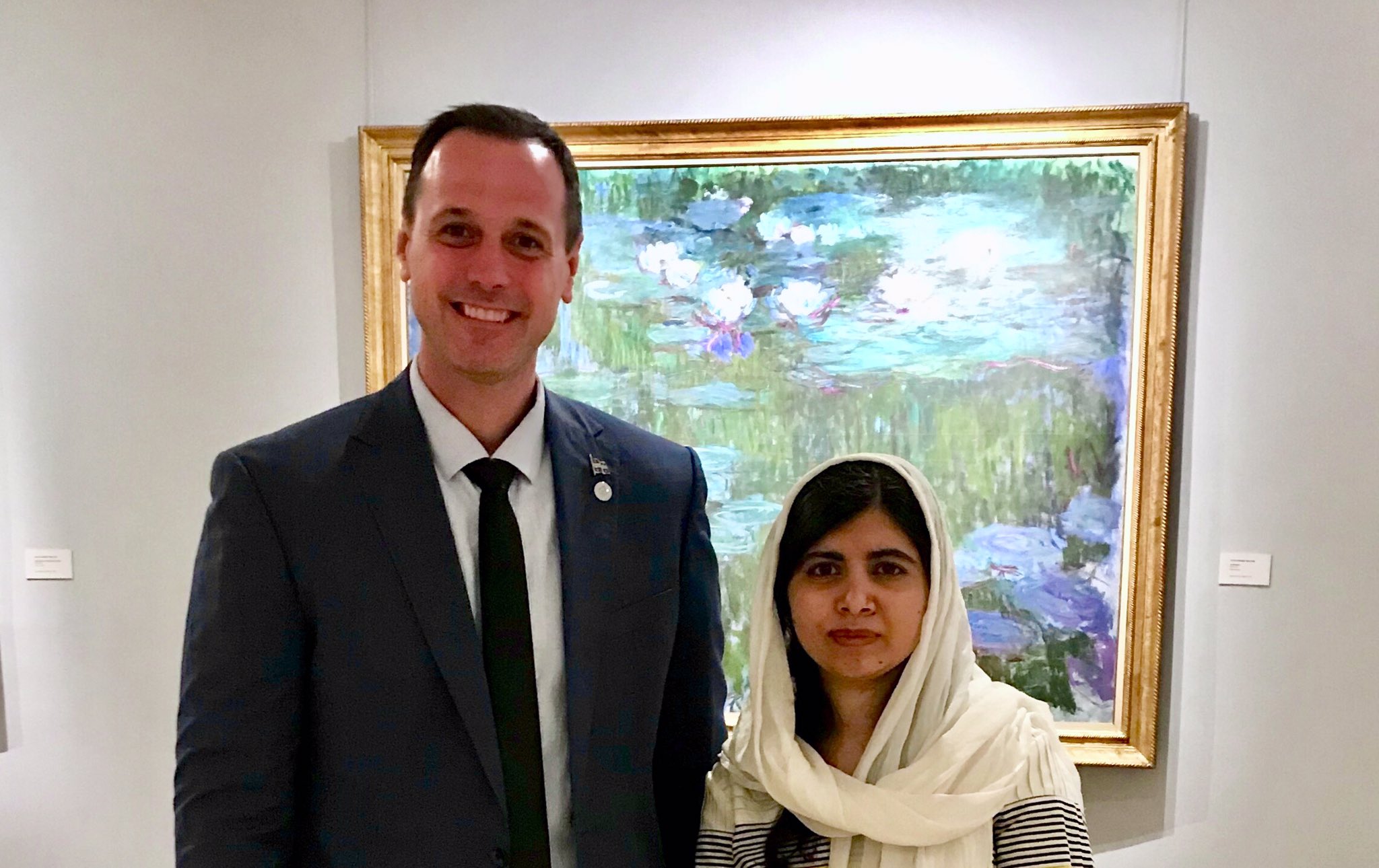 Belle rencontre avec @Malala Yousafzai, récipiendaire du prix Nobel de la Paix, pour discuter d’accès à l’éducation et de développement international. @UNESCO pic.twitter.com/nuRe36039O