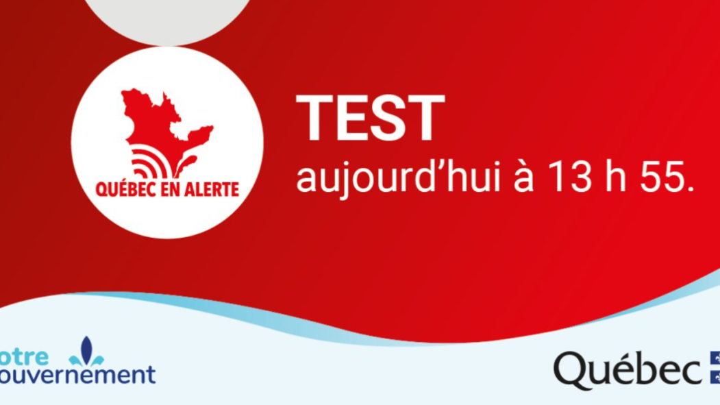 Le ministère de la Sécurité publique (MSP) testera son nouveau système Québec en alerte aujourd’hui, à 13h55. Vous recevrez donc une alerte à cette heure sur votre cellulaire, de laquelle il est impossible de se désabonner.