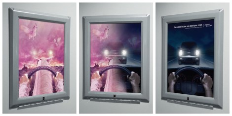 Du 8 juillet au 18 août, des publicités télévisées, des messages radiophoniques et des affiches dans des restaurants à proximité des routes exploiteront le thème du rêve pour pousser les conducteurs à réfléchir à leur niveau de fatigue. Dans la publicité télévisée, on peut voir un homme être confronté tour à tour à un pirate sanguinaire, une bombe sur le point d’exploser et des extraterrestres armés, avant de se réveiller en panique. La dernière scène le montre endormi au volant alors qu’il s’apprête à faire un face-à-face avec un camion. Une voix prévient alors de façon dramatique : «La différence entre un mauvais rêve et la réalité, c’est l’endroit où l’on s’endort.»