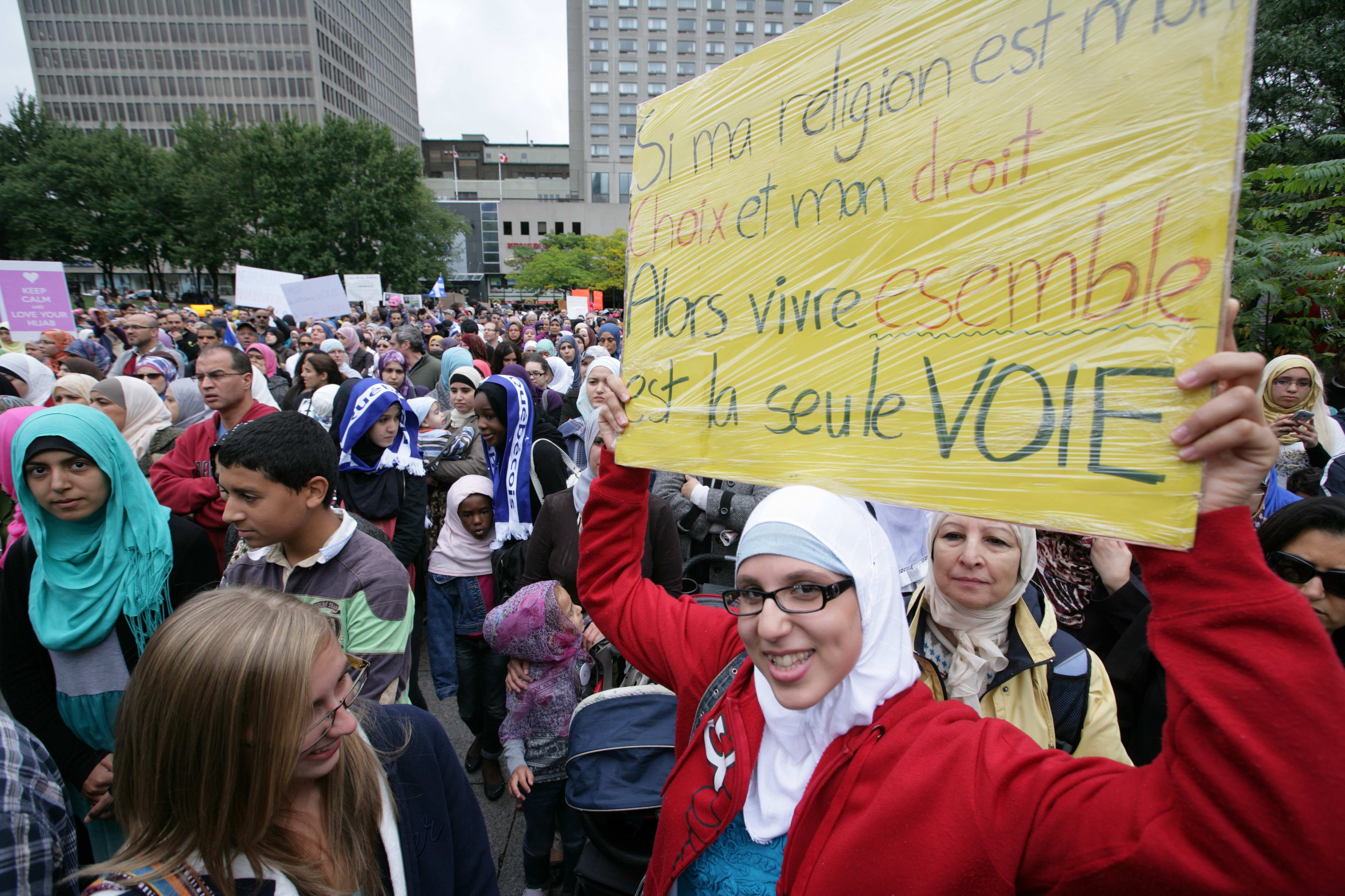 «Nous considérons que le port de signes religieux par les fonctionnaires de l’État n’est pas en contradiction avec la neutralité de l’État», a plaidé Geneviève Lepage, une des deux porte-parole francophones du groupe.