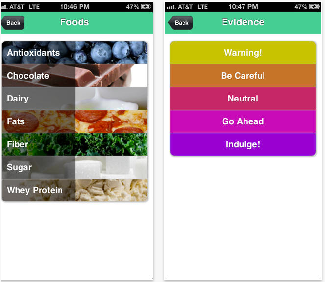 L’application utilise des données tirées d’études sérieuses pour indiquer aux utilisateurs si des aliments comme le chocolat, le gras, le sucre et la protéine du petit-lait sont associés à l’acné.